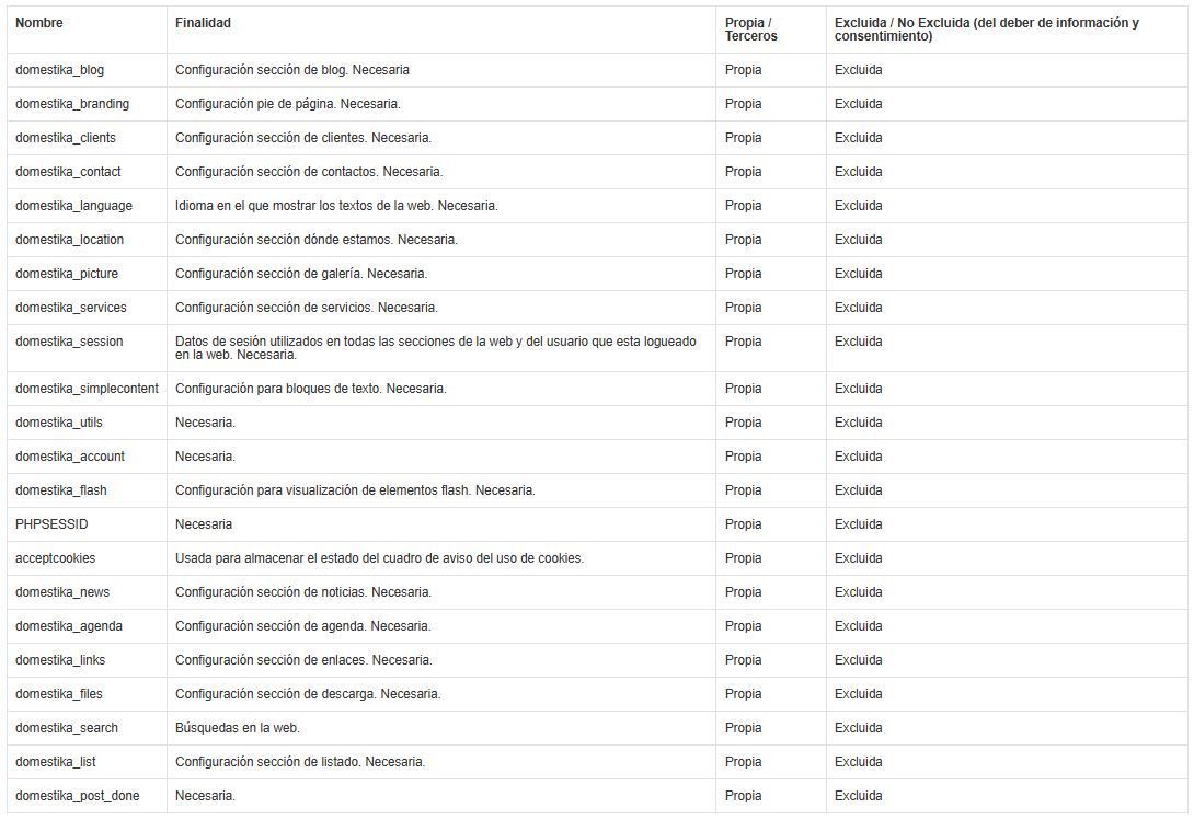 Si deseas más información sobre el uso de cookies puedes solicitárnosla a user@domain.com
